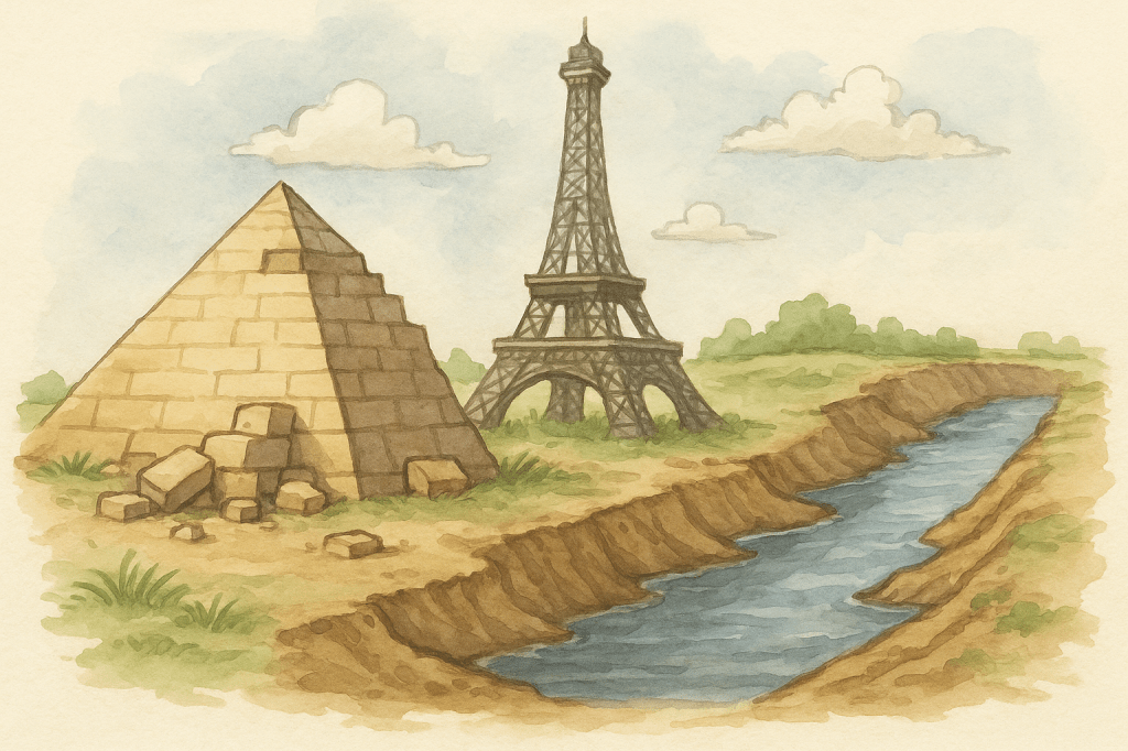 Without that, the pyramids become a backdrop, the Eiffel Tower remains a steel skeleton — and the Panama Canal turns into a giant rain puddle shaped by the attention span of a goldfish.